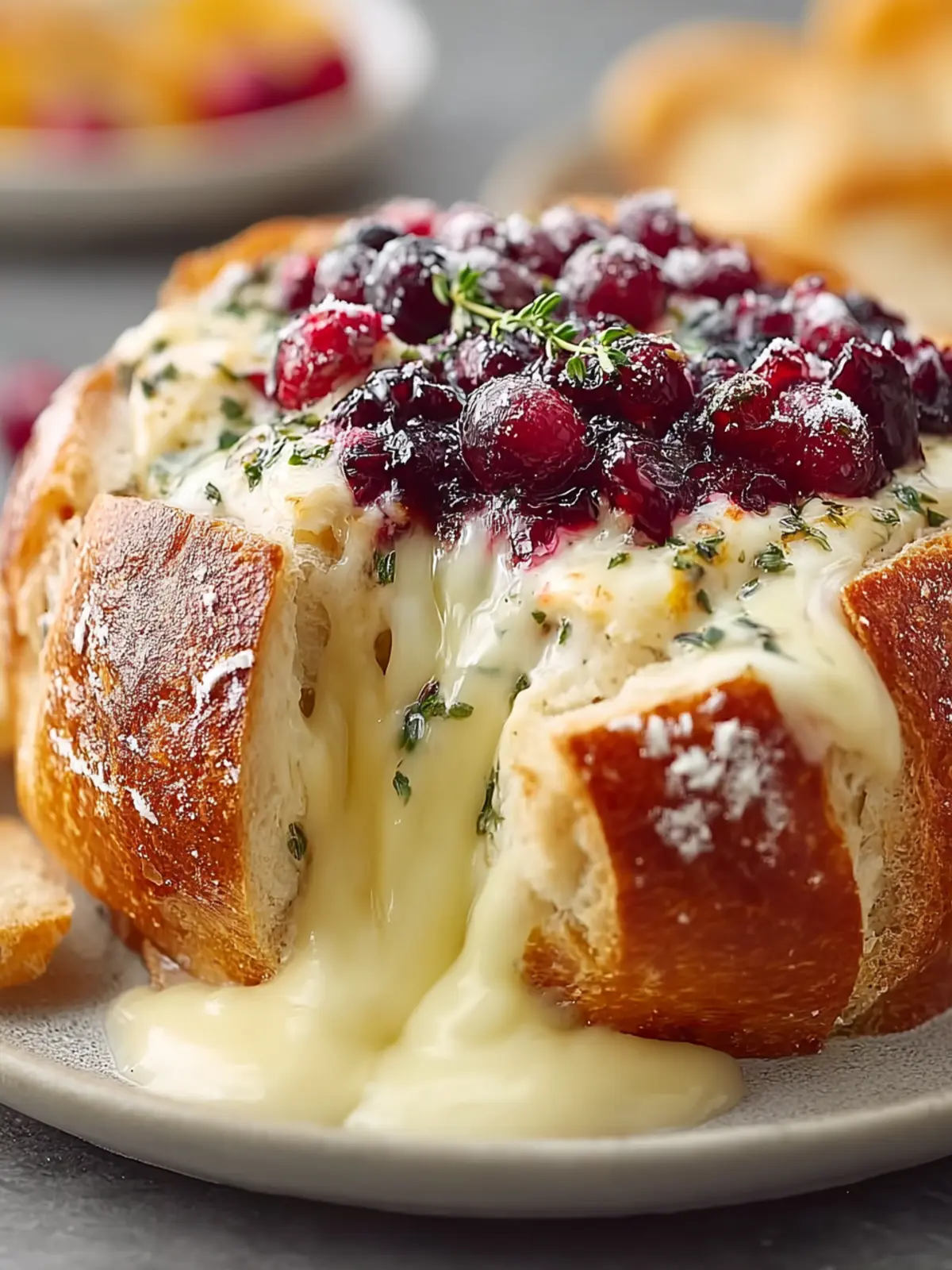 Herbs: Fresh thyme or rosemary sprinkled on top just before serving adds an aromatic layer to your baked cranberry brie bread bowl. The earthiness of these herbs beautifully rounds out the other flavors.
