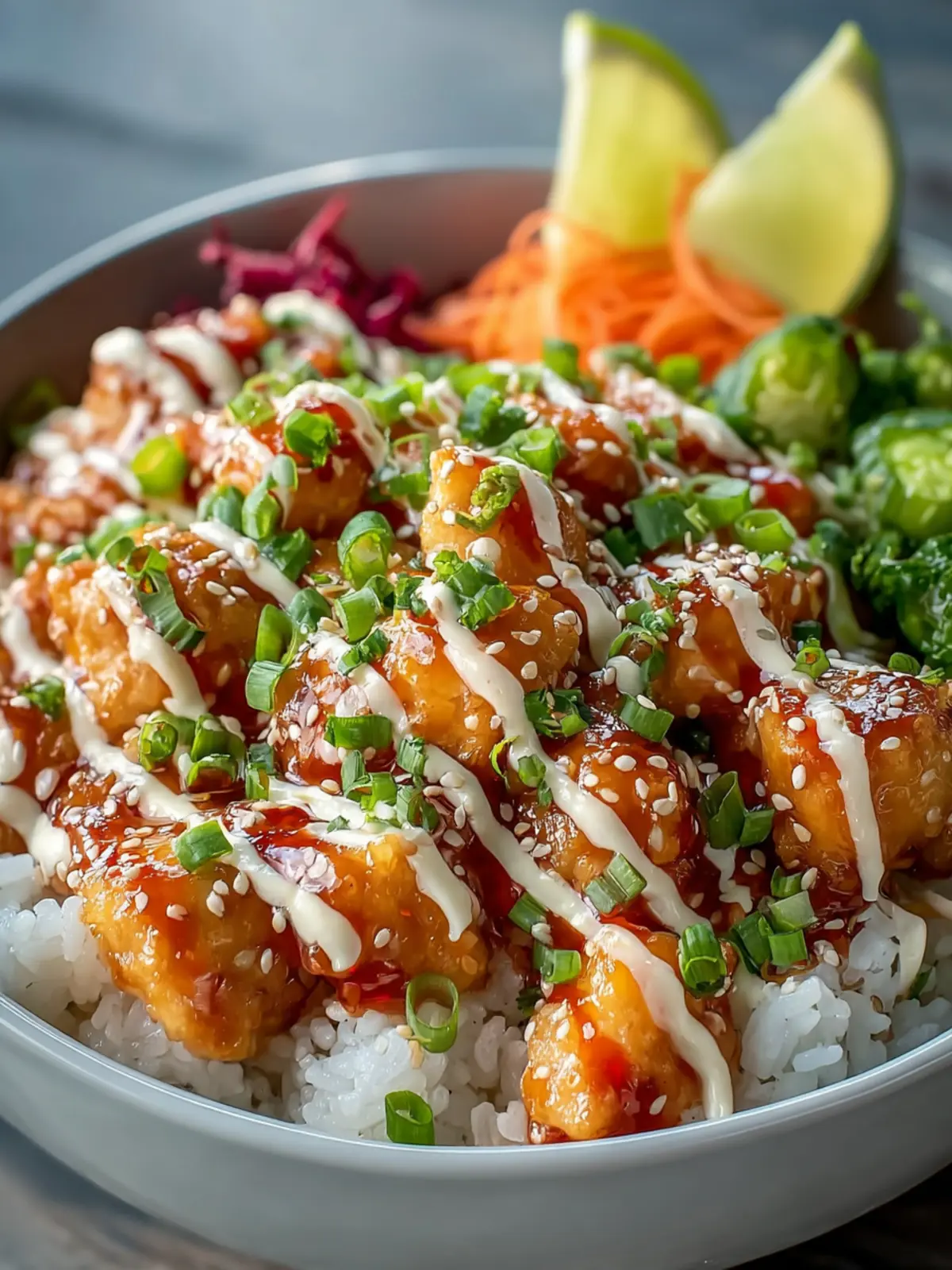 Certainly! While the signature bang bang sauce — a spicy mix of mayo, sweet chili sauce, and sriracha — is what makes this dish special, feel free to get creative! If you’re in the mood for something different, try a teriyaki, peanut sauce, or even a lemon garlic dressing. Just consider the complementary flavors to the chicken and veggies, and you’ll have a delicious bowl that aligns with your cravings.