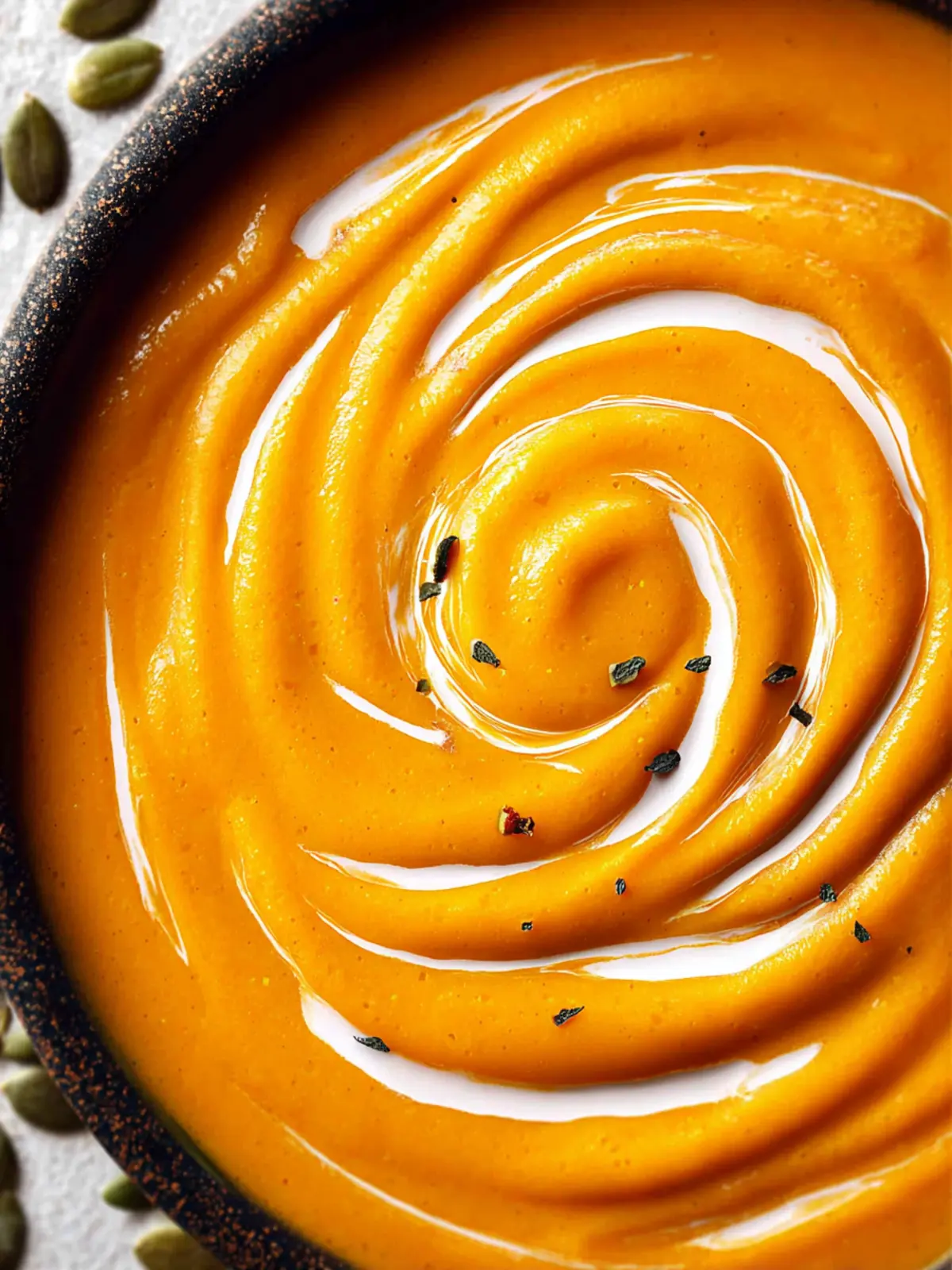 - Ladle into bowls, garnish with toasted, salted pepita seeds, and drizzle with heavy cream or coconut milk (optional).