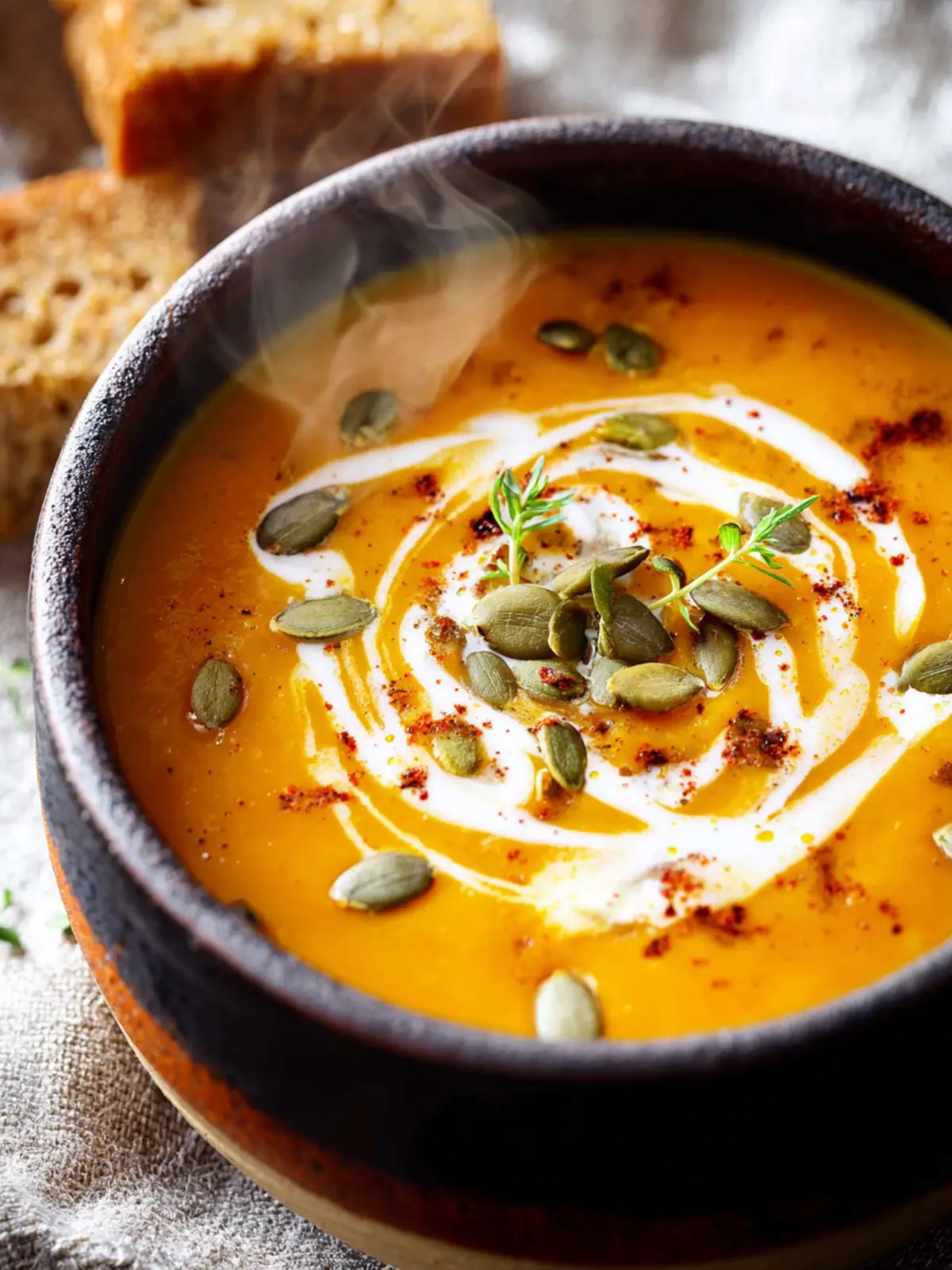 Consider topping your soup with toasted pumpkin seeds or croutons. This adds a satisfying crunch and balances the creaminess of the soup. Plus, these toppings are simple to prepare, making your serving both easy and fancy.