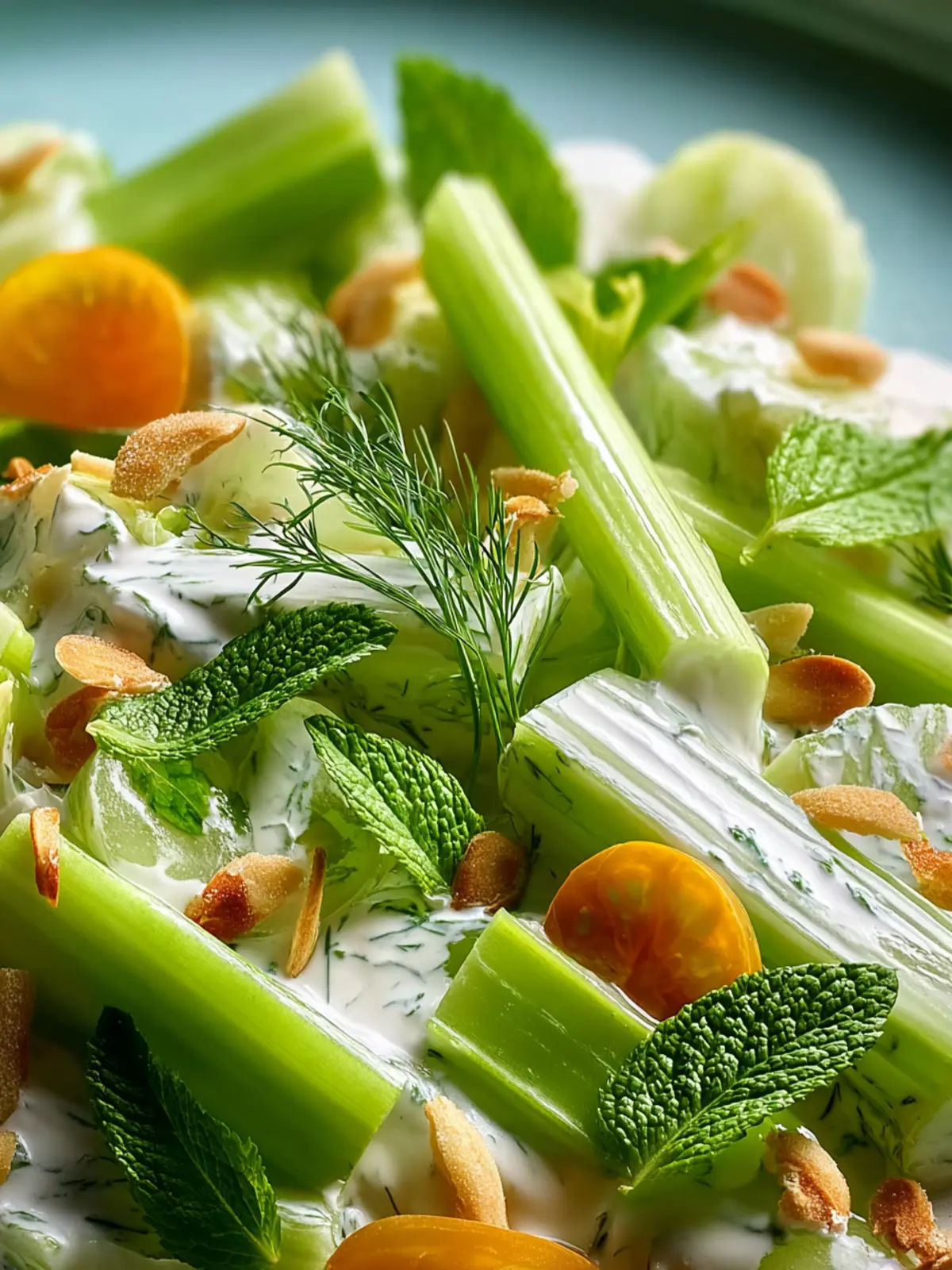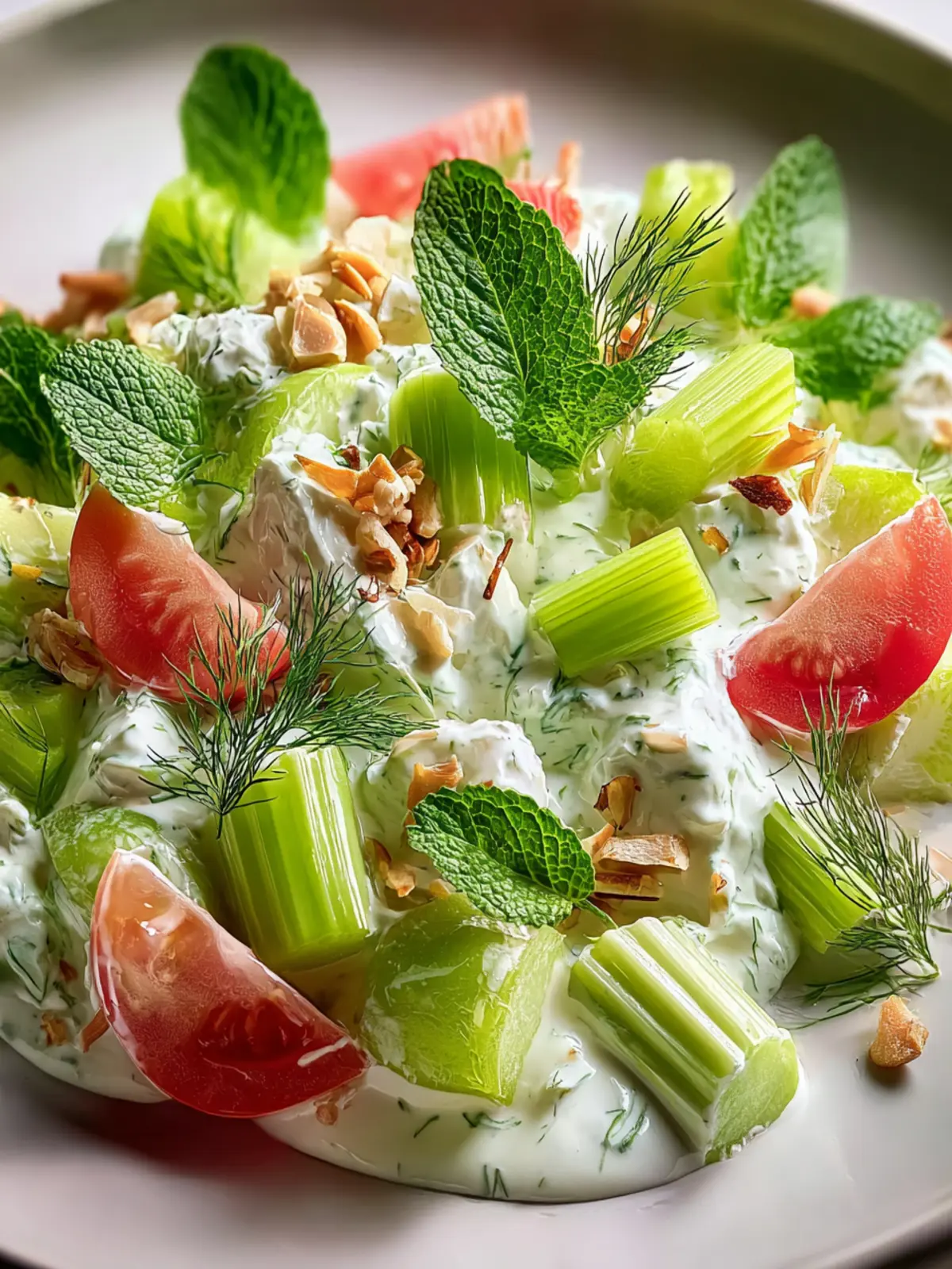 Fresh Herbs: A mix of herbs like dill or parsley elevates your celery yogurt salad with fresh aroma and color.