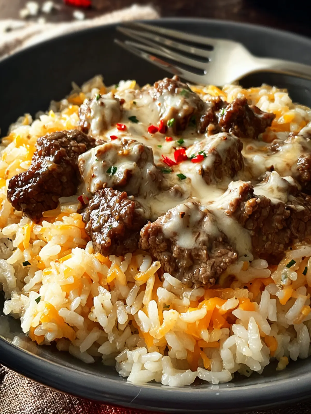 • Bowl Style: Consider serving your Creamy Garlic Butter Beef and Cheddar Rice in individual bowls topped with fresh herbs for a pop of color. This not only enhances visual appeal but also adds a burst of flavor.
