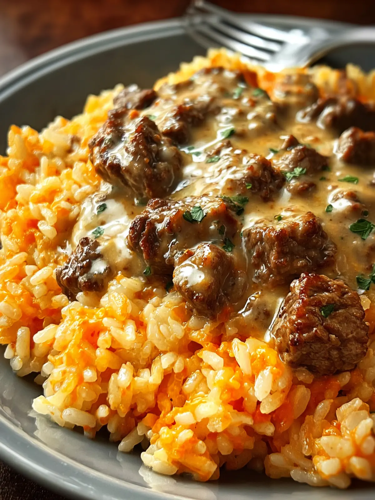 Creamy Garlic Butter Beef and Cheddar Rice Delight Recipe Magic First Image
