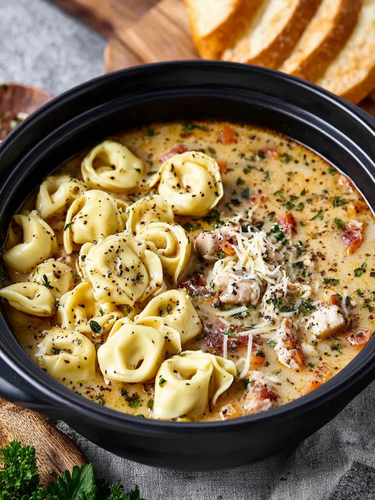 Creamy Finish: A splash of cream transforms the broth into a luxurious, velvety soup that wraps around the tortellini and chicken, making it almost irresistible.