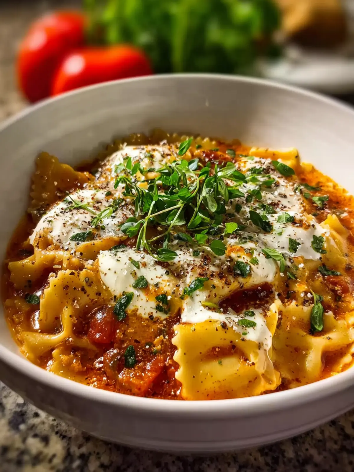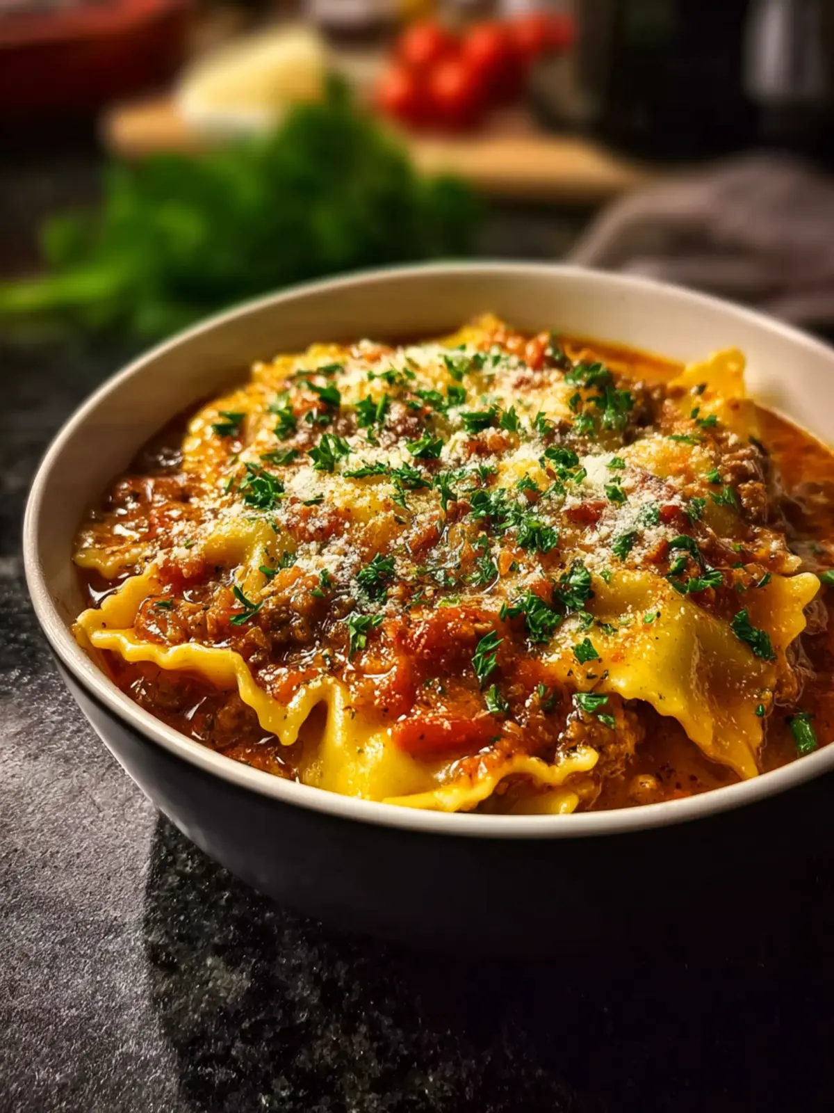 A deliciously creamy soup that captures the flavors of lasagna in a warm bowl.