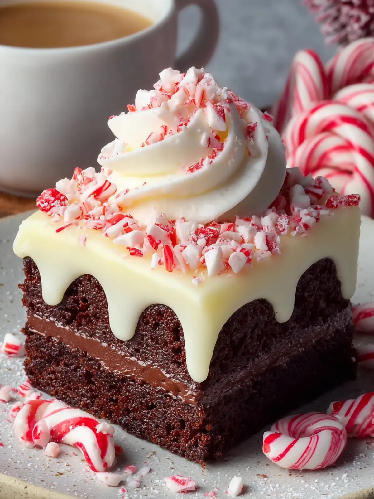 Visual Appeal: Layering creates a stunning contrast. When you cut into the cake, you’ll see swirls of chocolate and white, often garnished with festive peppermint pieces on top, making it a feast for the eyes too.