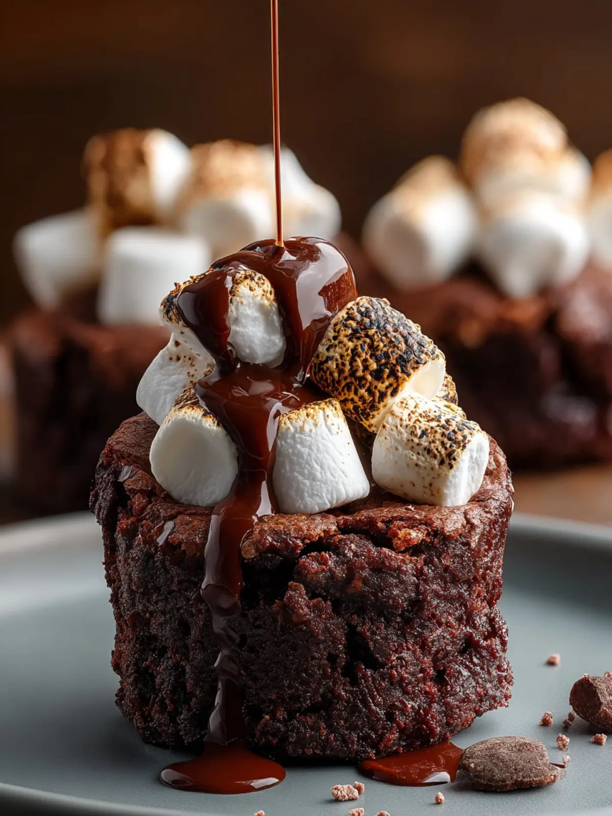 Mini Chocolate Chip Brownies with Toasted Marshmallows