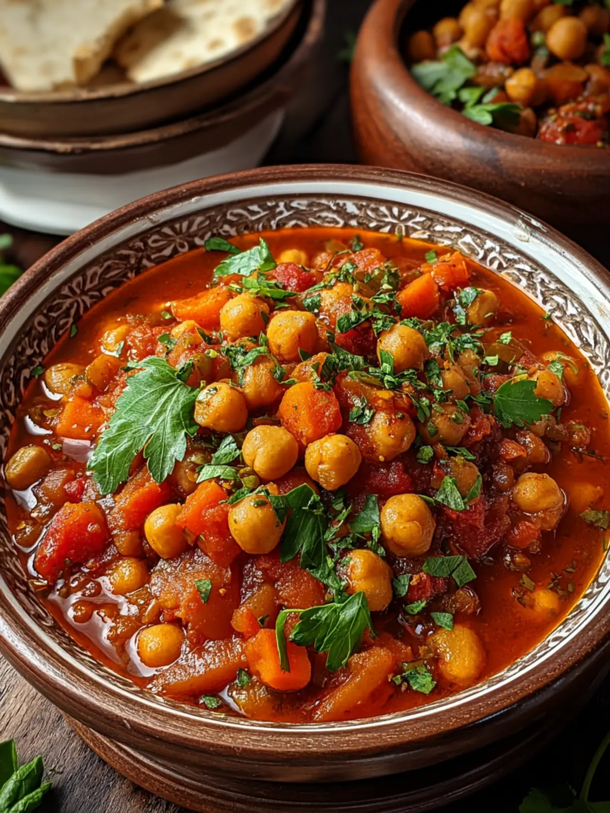 A hearty and nutritious chickpea and vegetable stew that is perfect for a cozy meal.