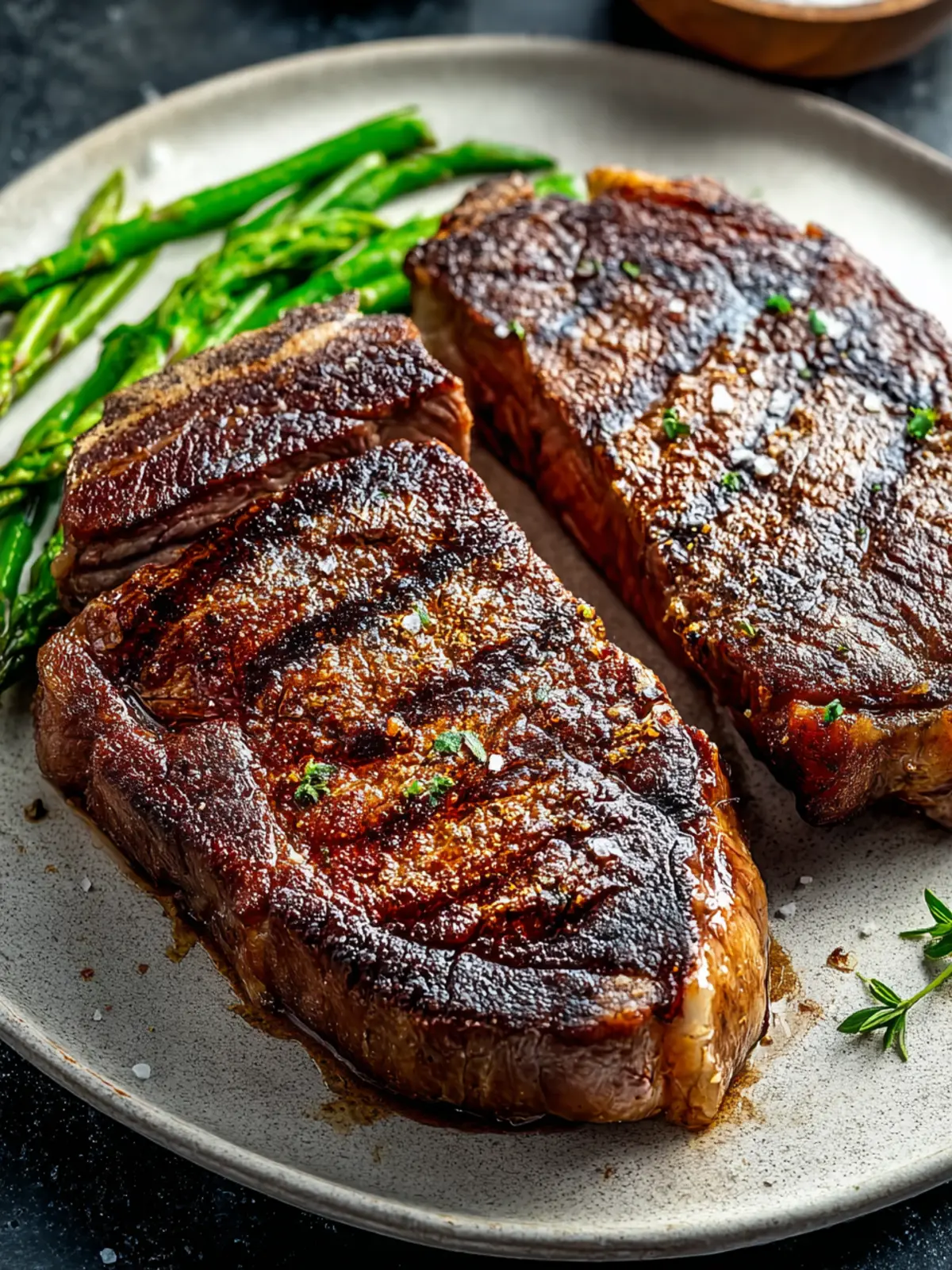 • Grilled Asparagus: The slight crisp from grilling brings a fresh and bright contrast to the savory flavors of the steak.